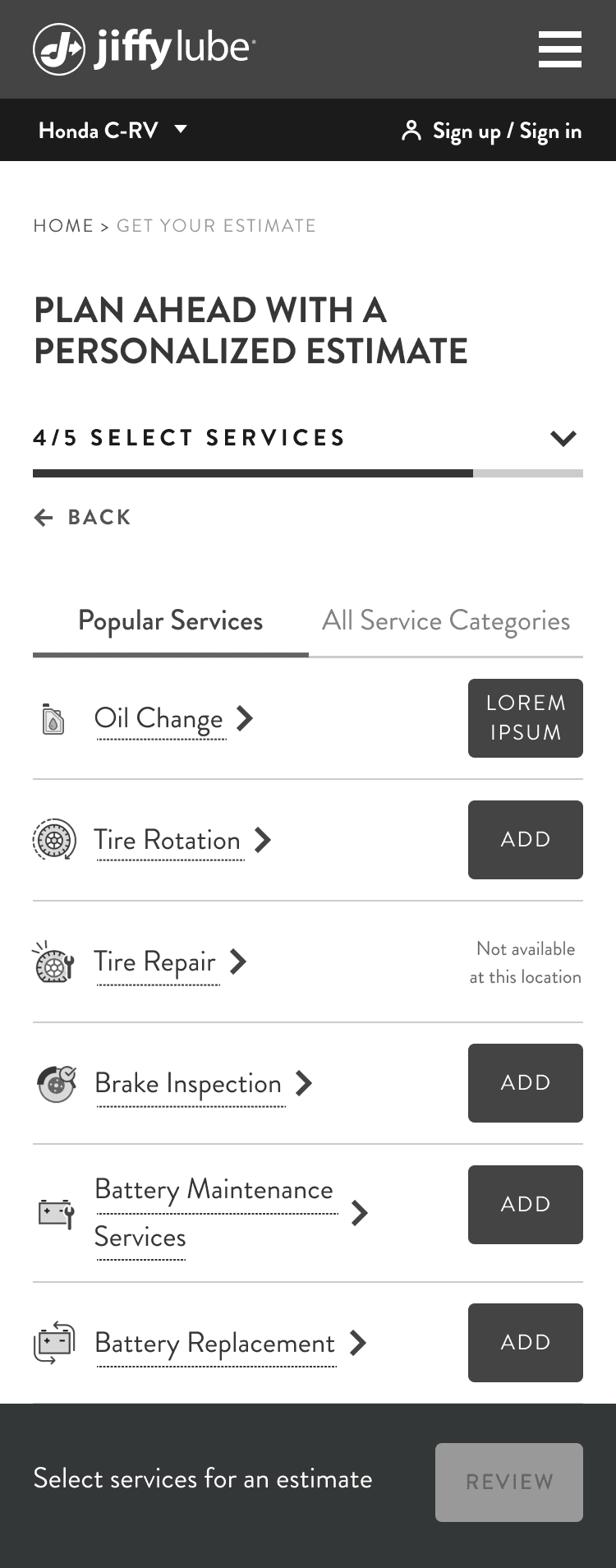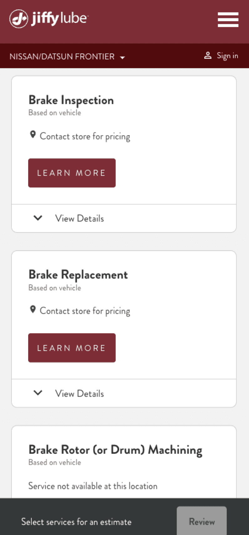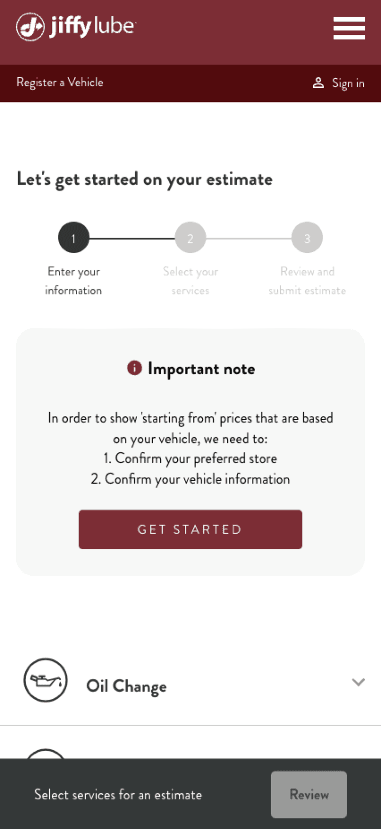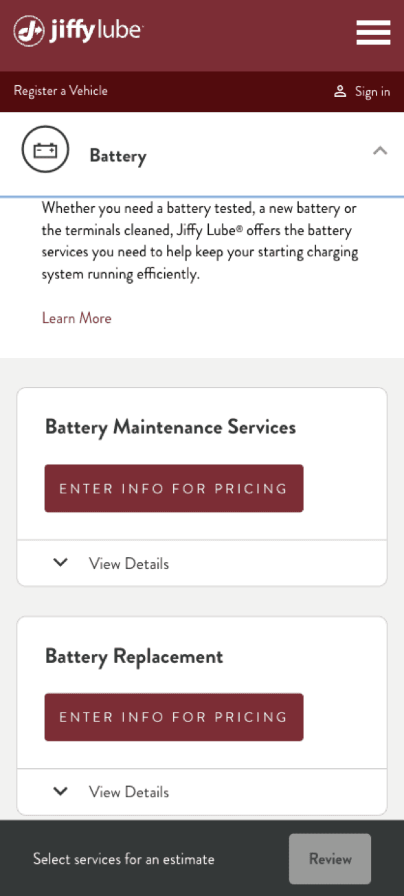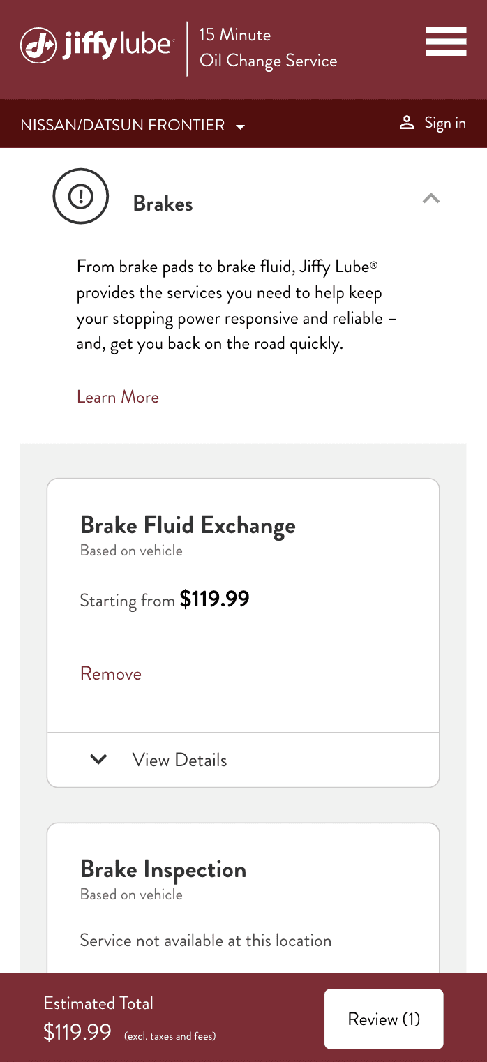 For popular services like oil changes that offer multiple options & prices, an absence of personalization creates more work for the user.
