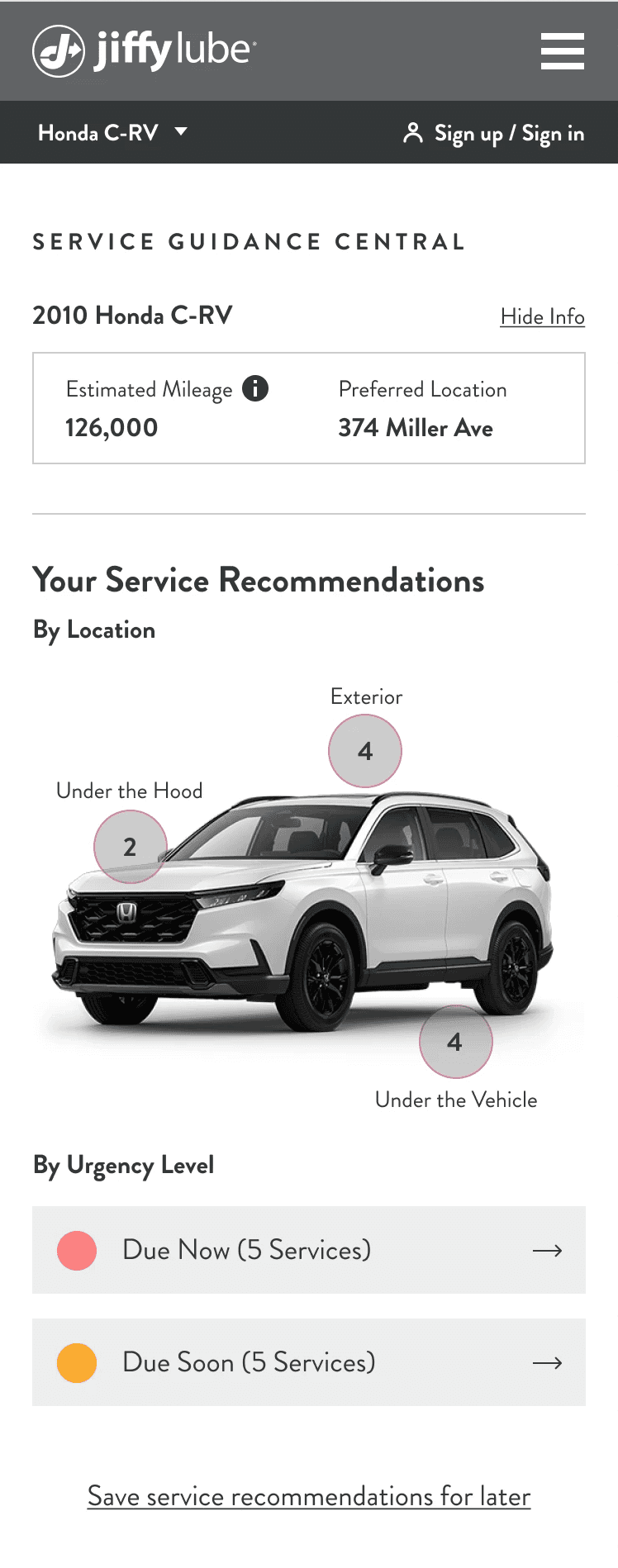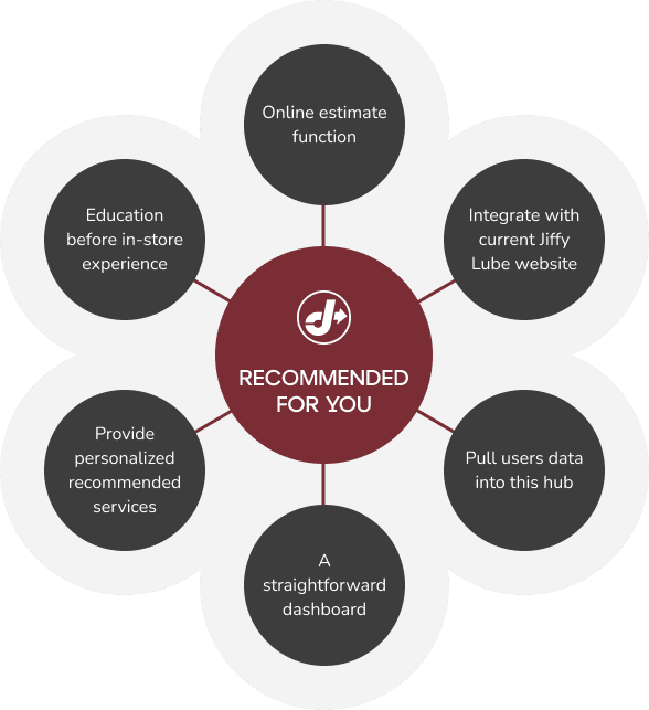 The biggest technical challenge for this project was integrating users' data into the Jiffy Lube website. Fortunately, Jiffy Lube can now link a user and a vehicle through a receipt. As a result, all customers who have visited a Jiffy Lube store can provide their vehicle's VIN number or license plate to retrieve their information in the system and receive personalized recommendations.