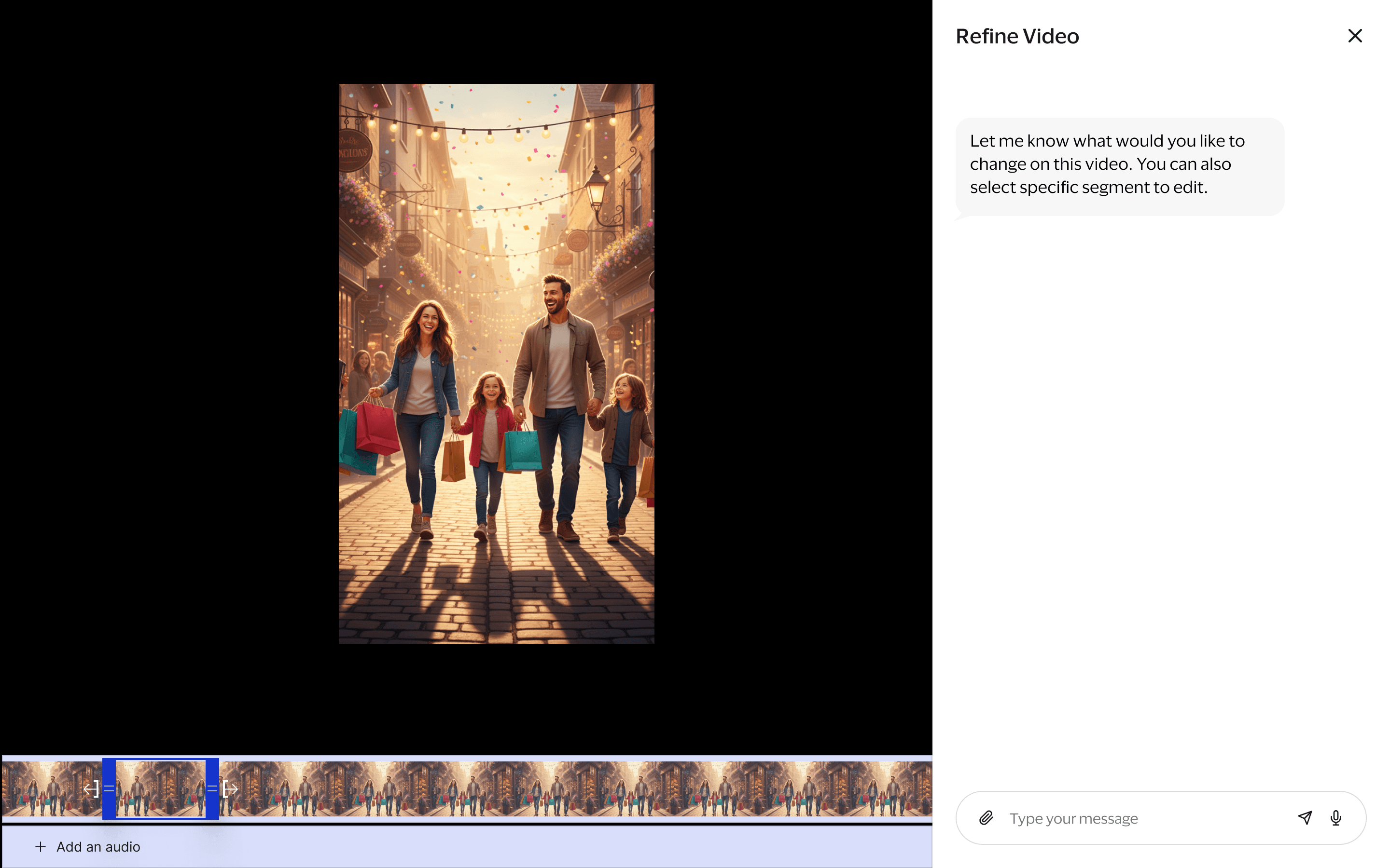 An optional “Advanced Options” panel gives power users deeper control over visual intensity, color, lighting, and camera styles, while the refinement mode provides an interactive way to adjust specific elements—such as background, characters, or composition—through natural language commands.